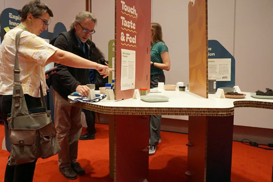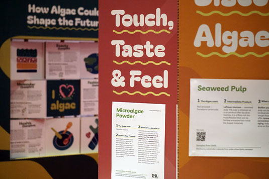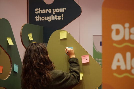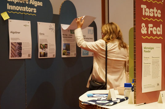 Making Algae’s Potential Tangible at the EU Algae Awareness Summit 2025 Are your curious about algae and how they can be used to achieve greater sustainability? At our “Feel the Sea” exhibition as part of the Algae Awareness Summit 2025 held in Berlin, Germany participants explored different uses of algae, got to know algae innovators and most importantly were able to touch, taste, and feel algae! As part of the AlgaeProBANOS project (co-funded under the EU’s Horizon programme), the CSCP Creative Communication team designed and hosted the algae experience exhibition—an interactive space where visitors could touch, taste, and feel algae. The exhibition set out to surprise, spark curiosity, and build connection to an organism that humans have used for at least 30,000 years. From facts to connection When communicating about sustainable solutions, like new applications of algae and its derivatives, it is important to also connect to people on an emotional level. There are countless facts and scientific findings about algae, but raising awareness and encouraging people to try a new product or process is often not enough. As Alessandra Portis, Communication Officer at the European Commission put it, the exhibition “made algae easy to get”. A short history of a long partnership This is why the exhibition starts with a dive into our shared human–algae history. Even seasoned experts at the 2nd EU Algae Awareness Summit were surprised by the many ways people have utilised algae: from bull kelp used as waterproof containers by indigenous peoples around the Pacific, to the production of alkali for glass, soap, and explosives from the 17th to early 20th century. We’ve also eaten algae for centuries—Spirulina harvested from lakes in regions such as Mexico and Chad as a high-protein food or laverbread as a nourishing Welsh staple for at least 800 years. From pilot to product—made tangible To make innovation concrete, we showcased the life-cycle stages of our AlgaeProBANOS pilot companies: algae species, intermediate materials, final product. Visitors could see (and in some cases taste) real algae products—making it clear what algae can become in everyday life. Mapping a thriving ecosystem At our Algae Innovator Board, over 50 innovators shared key facts about their solutions, offering a quick overview of the field and an easy way for participants to connect with relevant teams. Where algae can move the needle A rotating block installation highlighted eight promising impact areas for algae: climate, health, chemicals, food, textiles, agriculture, biomaterials, and beauty. School children who visited the exhibition particularly loved this interactive component. While there are many more applications for this “slimy jack of all trades”—as a German newspaper described it and as cited at the event by the German Minister of Agriculture, Alois Rainer—these eight focus areas help make the potential of algae more tangible. Thanks to our “Share Your Thoughts” sculpture and the many conversations inspired by the exhibition, we received valuable feedback that will help us enhance the impact of the next algae experience exhibition. Stay tuned for updates on the project and the location of the upcoming “Feel the Sea” algae experience! For further questions, please contact Nikola Berger.
