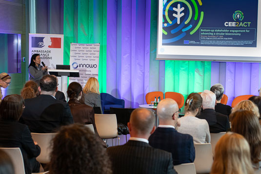 CEE2ACT at the Circular Week 2025: Shaping a Circular Bioeconomy for Central and Eastern Europe How can Central and Eastern Europe lead the way toward a circular bioeconomy and a more sustainable future? At the opening day of the Circular Week 2025 in Warsaw, Poland, our CEE2ACT project team showcased how collaboration, local empowerment, and innovation can turn the circular bioeconomy from vision to action. The Circular Week 2025, which is hosted by the Institute of Innovation and Responsible Development— INNOWO, brought together high-level representatives from the European Commission, national governments, and international organisations including EIT Food, the Ellen MacArthur Foundation, and Circle Economy. This first day, themed “Circular Bioeconomy as Key for Biodiversity and Resilience”, set the agenda for the week. Our CEE2ACT project, which supports ten Central and Eastern European (CEE) countries in building national bioeconomy strategies through stakeholder engagement and evidence-based processes, was presented as an example of cross-country and multi-level actor collaboration. In the session “The CEE2ACT Project and its Bottom-Up Approach to Promote the Bioeconomy Development in the CEE Countries,” CSCP Project Manager Kartika Anggraeni and the coordinator of the CEE2ACT Polish National Bioeconomy Hub, Piotr Jurga (IUNG-PIB) showcased how the project mobilises ministries, research institutions, businesses and communities to co-create bioeconomy roadmaps at national and regional levels. The Polish National Bioeconomy Hub, represented by Piotr Jurga, shared insights into the ongoing work on a Circular Bioeconomy Roadmap, which will underpin Poland’s future National Bioeconomy Strategy. A key milestone achieved by the Polish Hub during the day was the signing of a Memorandum of Understanding (MoU) among several organisations — marking a formal step in strengthening cross-sector cooperation and driving toward a circular, bio-based economy. As the panels of the day explored topics such as bioremediation, national strategy formation, materials transition and biodiversity reporting, CEE2ACT stood out as an operational example of bottom-up implementation. By strengthening national capacities and promoting peer-learning across CEE countries, the project shows how regional collaboration can accelerate meaningful change. You can read more about the work of CEE2ACT in supporting 10 Central and Easter European countries to shape their national bioeconomy strategies here. Within the framework of the Circular Week 2025, the student competition “The Circular Shift: Business Reinvented” held its grand final at Kozminski University, Warsaw, on November 4, where six student teams from across Poland presented circular business solutions to sustainability challenges. CSCP’s Kartika Anggraeni was part of the jury alongside over ten European organisations, supporting initiatives that engage the next generation in shaping a circular bioeconomy. In 2026, the CSCP will join Circular Week as a co-organiser, bringing the initiative to Germany and highlighting the role of cities in driving the circular transition with a combination of online and in-person events. Would you like to engage with us and be actively involved in Circular Week 2026? Reach out to Mike Tabel! The CEE2ACT project is funded by the European Union’s Horizon Europe research programme and will run for three years (2022-2025), led by a consortium of 17 European partners. For further questions, please contact Kartika Anggraeni.