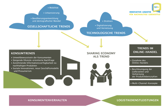 ILoNA Innovative Logistics for Sustainable Lifestyles Logistic services are continuously expanded and adapted in accordance with the demand for goods and services. The transportation of a product from its origin to its place of consumption is tied to numerous environmental and social impacts such as CO2 emissions from lorries or employees’ health and safety. To address consumers’ growing awareness of the social and ecological ramifications of their online purchases, logistic providers are increasingly taking the environmental and social impact of transportation methods into consideration. But looking at how goods get to their final destination isn’t enough. We need to move beyond this first step and counterbalance the ecological and social impacts resulting from an increase in logistics and trade. To achieve this, ILONA develops and mainstreams innovative products, services and business models in the logistics sector. The project places special emphasis on understanding the interdependencies of consumption choices and environmental and social impacts of logistics practices. The central questions to be answered during this project are: How can innovative logistic services be designed to meet both socio-ecological requirements as well as promote sustainable lifestyles of consumers? What kind of changes should take place on the consumer side to support sustainable logistics structures? To get a better understanding of the interaction between consumer behaviour and logistic services, ILoNa is creating an innovation platform for logistic providers, researchers, and civil society. The platform will facilitate the development of business models, products, and services focused on logistics that enable sustainable consumption. Using a multi-stakeholder engagement process, ILoNa is identifying concrete measures to simultaneously address sustainable lifestyle and logistic trends by implementing pilot projects during the project phase in cooperation with business partners Fiege and Schachinger. Alongside the pilot projects, communication strategies that incentivise sustainable consumption choices are being developed and tailored to reach specific target groups. ILoNa is also developing a tool to measure the social, ecological, and economic impact of logistic processes, which will strengthen the accountability of logistic providers and the transparency along the supply chain. The project is specifically looking at sharing economy business models. Here, the focus is on how they disrupt existing business models as well as the opportunities they provide for sustainable lifestyles. We are conducting research on sustainable lifestyles and the consumer’s awareness of logistics issues while transferring the insights into recommendations for new business models, products, and services. Furthermore, we are continually active in the facilitation of a multistakeholder-process between research, business, and civil society with the aim of piloting the resulting products and services. Whether you are a business, in academia, or part of civil society, join us at the forefront of innovating the logistics sector! Be part of the solution and get involved with the ILONA innovation platform. Visit our website to find out when the next multi-stakeholder workshop will take place.