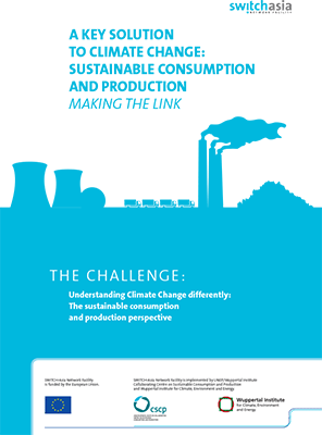 A Key Solution to Climate Change: SCP – The challenge This booklet has been published by the EU funding programme SWITCH-Asia: Promoting Sustainable consumption and Production. It is aimed at European and Asian businesses, organisations involved in developing sustainability solutions, policy-makers, and project developers wanting to help reduce the climate change impact of business in as broad a way as possible. This booklet is two-folded, while the first part deals with the ‘challenges’ in understanding the causal relationship between economic activities and climate change as the second part highlights some practical ‘solutions’ that can be funded, at least in part, by the programme.