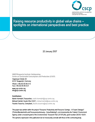 Raising resource productivity in global value chains This paper builds on results from material flow analysis that show how material flows are increasingly crossing national boundaries. As a central structure the paper takes a ‘value chain’ approach, showing perspectives on the topic from an international perspective, especially focusing on emerging best practices of public and private actors.