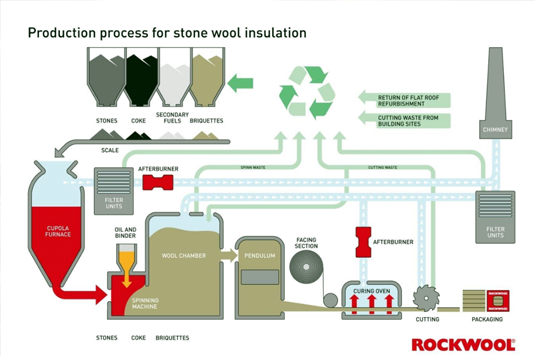 By using a Circular Business Model, Rockwool introduced the ‘RockCycle’ take-back program for mineral wool. It consists of co-product recovery, re-make, and resource recovery – all of which are integrated along the entire value chain. The company makes sure that any cut-off and excess material in the internal production of mineral wool feeds back into its production cycle.